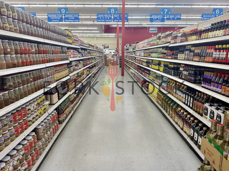 A wide shot showing a stocked grocery isle at a Vietnamese market in Denver, Colorado. November 2025. Full size image: 5264 × 3948 Pixels JPG.