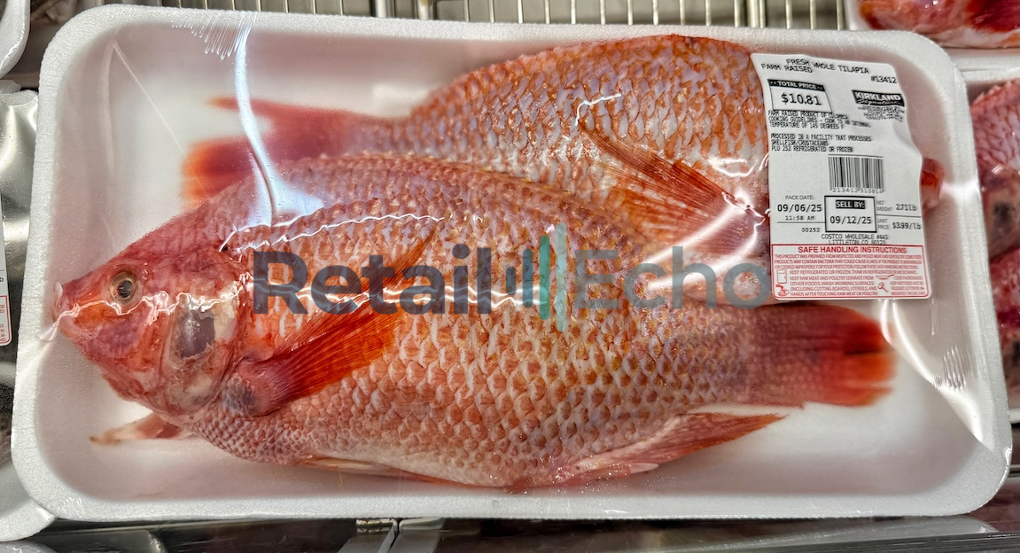 A tray of tilapia on display at a Costco in Denver, Colorado. September 6th 2025.