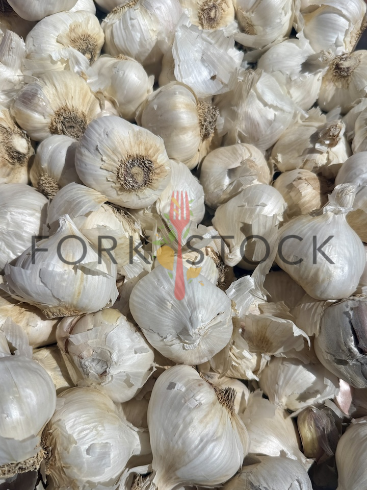Many garlic cloves in a bin at a King Soopers produce area in Denver, Colorado. November 2025. Full size image: 3601 × 4801 Pixels JPG.