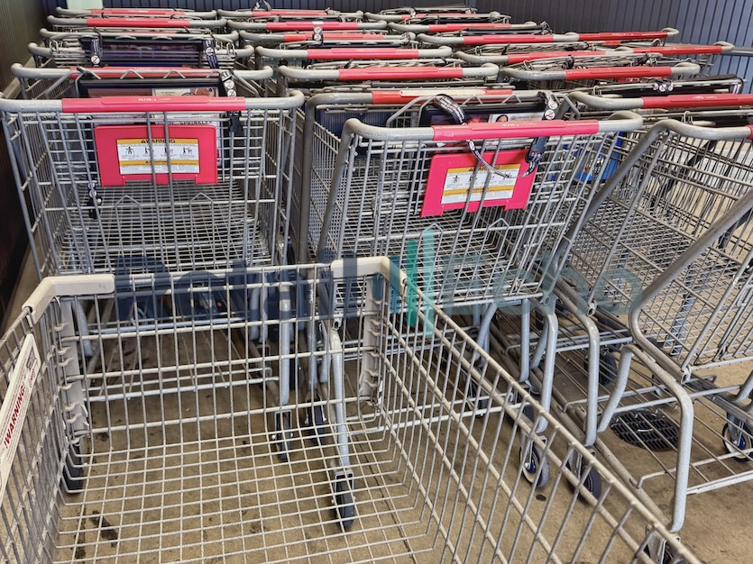 A shopping cart or shopping buggy area at a grocery store in Colorado. September 2025. Full size image: 4176px × 3131px.