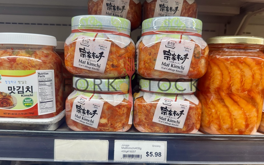 Jars of Jonnga Mat Kimchi cut cabbage kimchi in a refrigerated section at a Vietnamese market in Denver, Colorado. Full size image: 3697 × 2317 Pixels JPG.
